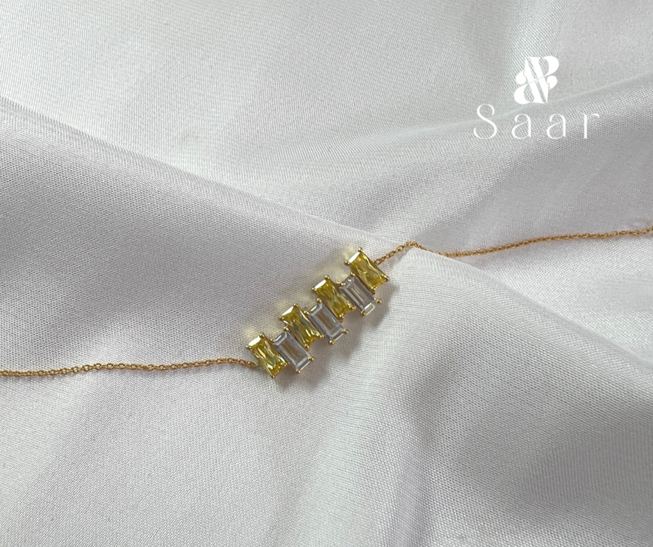 92.5 Sterling Silver Baguette Bracelet With White And Yellow Zircon