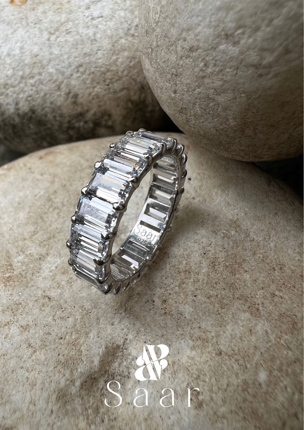 92.5 Sterling Silver Eternity Ring with High-Quality Emerald cut Zircon